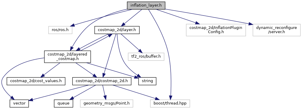 #include <ros/ros.h>#include <costmap_2d/layer.h>#include <costmap_2d/layered_costmap.h>#include <costmap_2d/InflationPluginConfig.h>#include <dynamic_reconfigure/server.h>#include <boost/thread.hpp>