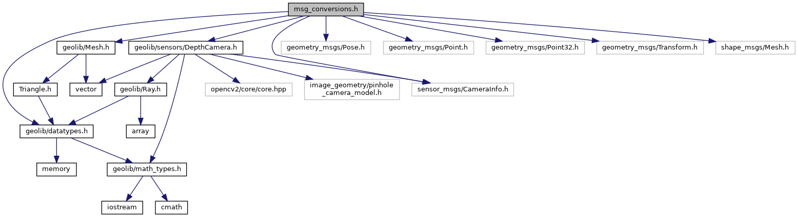 | | converting geo::TraingleI (Indices of a triangle in a vector of points) to shape_msgs::MeshTriangle More...